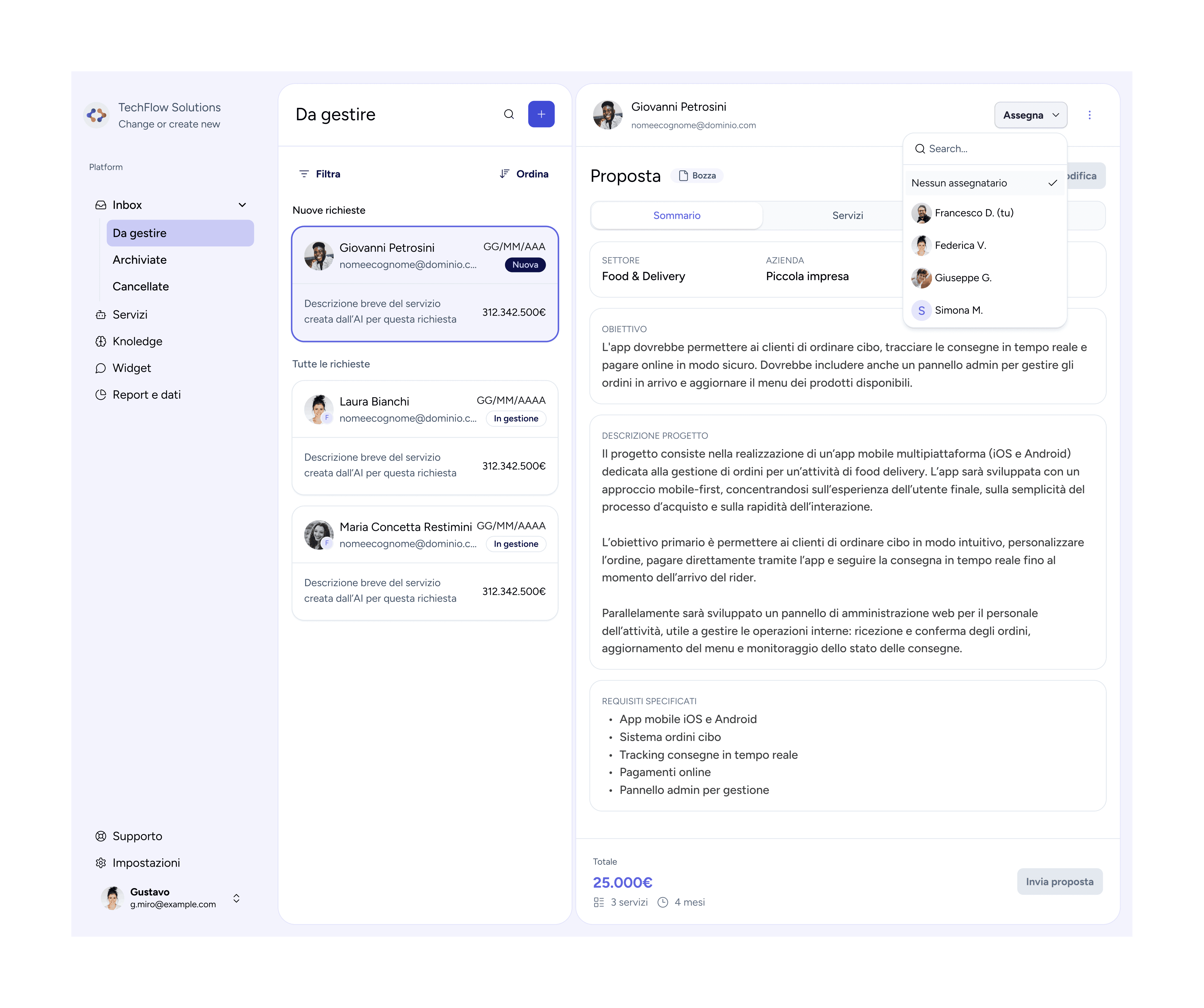 Bonobo AI è una piattaforma che intercetta le richieste, dialoga con i clienti, raccoglie le informazioni e genera preventivi pronti da approvare.